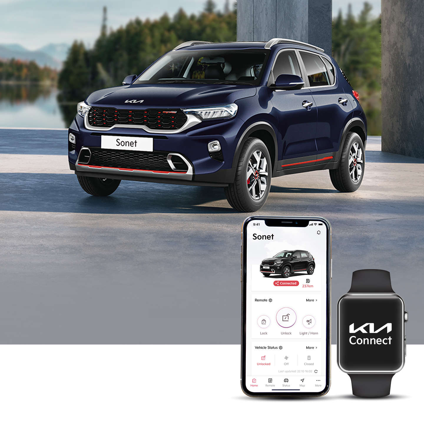 The Kia Sonet isn’t just all muscle. Powered by the latest evolution of Kia , it offers you 58 smart ways of staying connected, making it the brainiest of all SUVs. Kia Connect advanced technology includes AI Voice Command, Voice Assisted Sunroof